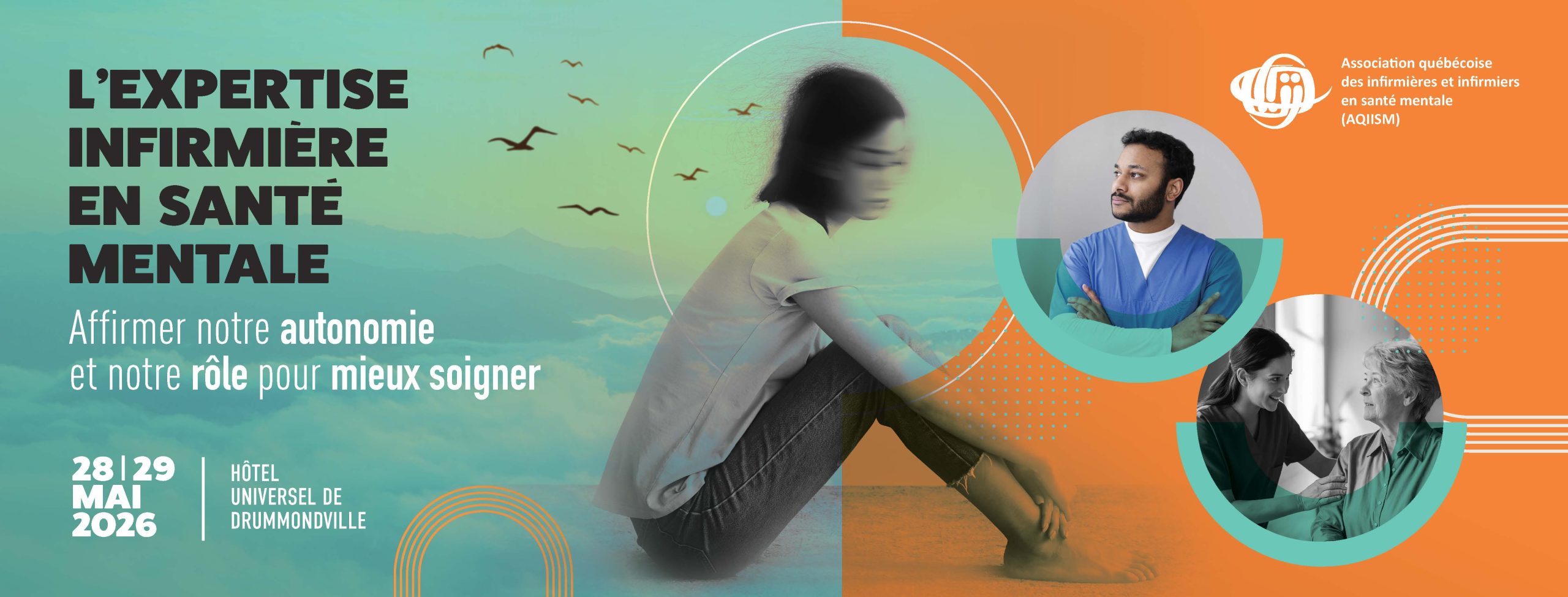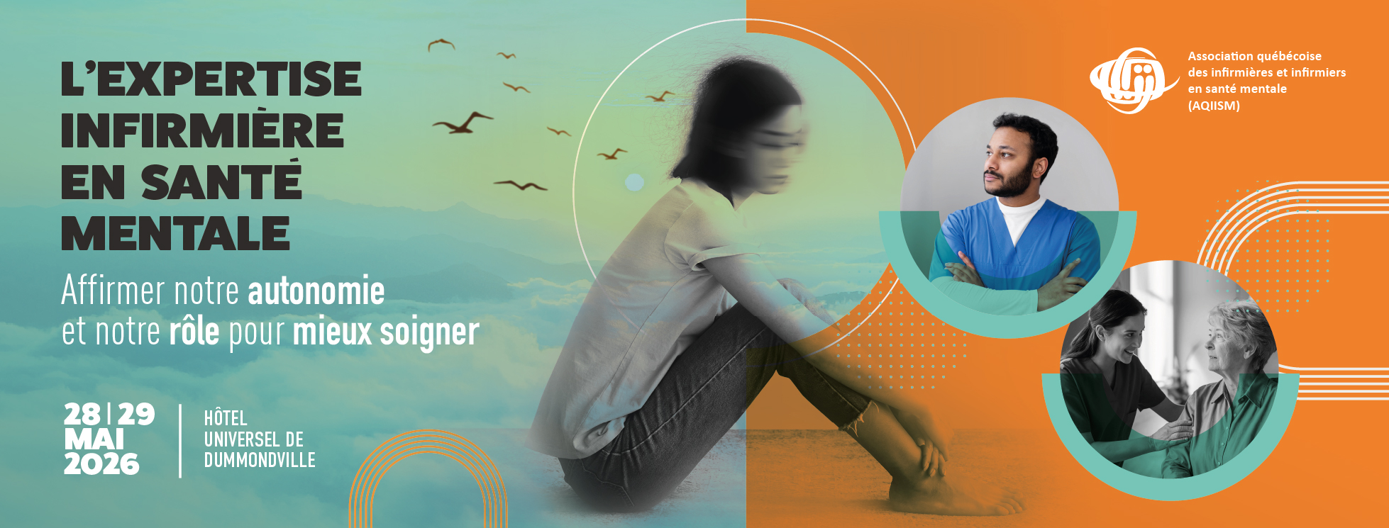 L’Association québécoise des infirmières et infirmiers en santé mentale (AQIISM) a le plaisir de vous convier à son 42e colloque annuel, qui se tiendra les 28 et 29 mai 2026 à l’hôtel Universel de Drummondville.